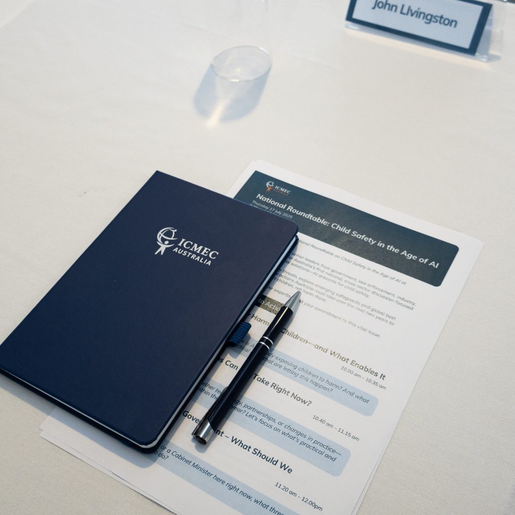 Hosted by ICMEC Australia, the roundtable brought together senior leaders from government, law enforcement, technology, and child protection sectors. Participants addressed the alarming growth in AI-facilitated child sexual abuse, including deepfakes, synthetic child sexual abuse material (CSAM), automated grooming, and child-like AI personas.